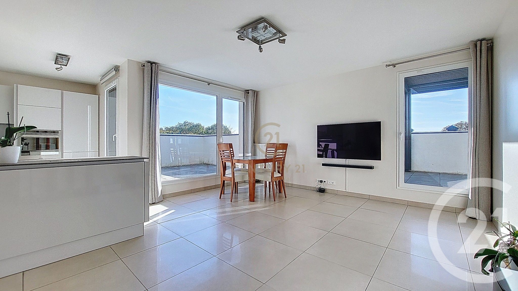 Vous découvrirez une entrée avec placards ainsi qu'un séjour exposé SUD OUEST donnant sur une cuisine ouverte totalement aménagée et équipée, idéale pour partager des moments conviviaux. Un couloir dessert deux chambres confortables, une salle d'eau moderne et un wc indépendant,